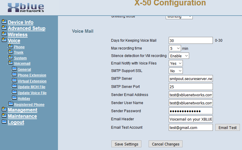 X25 & X50 Voice Mail to Email Test Account
