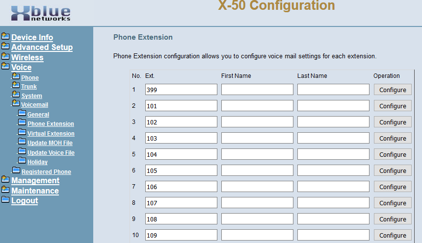 - Go to Voice > Voicemail > Phone Extensions.