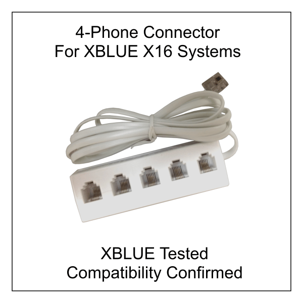 This 4-Phone Connector module is used to expand a single Digital Extension Port into 4 Ports.  Up to 4 X16 phones can be connected to each module.  Up to 4 modules may be used with the X16 system.