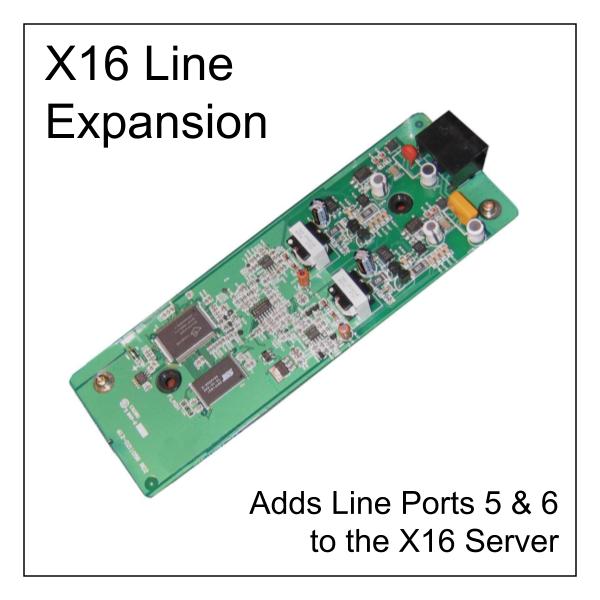 Adds (2) Telephone Line Ports to the X16 System Server which increases the system line port capacity from 4 lines to 6 lines. One X16 expansion module may be added to each X16 system.
